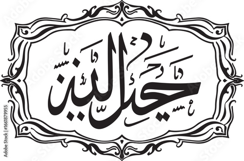 "Islamic Calligraphy with Ornamental Frame" "Arabic Calligraphy Art in Decorative Border" "Traditional Islamic Wall Art Design"
