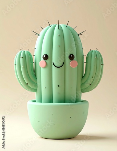 Cute 3D Pastel Mint Cactus Character Minimalist Aesthetic