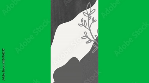 Animation of grey leaves with copy space on white background