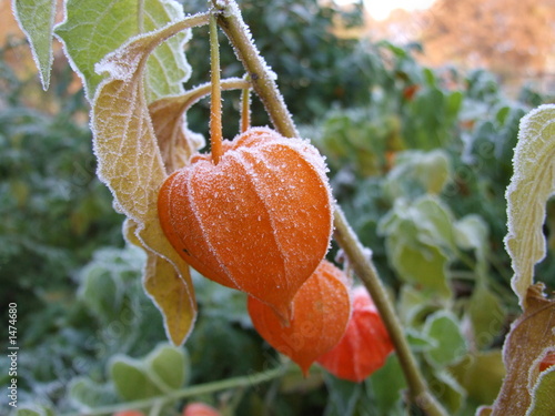 Ground Cherries. Raspberries and Ground Cherries Encased in Delicious Ice