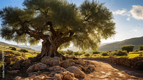 An ancient olive tree, standing tall and proud, representing the wisdom and longevity of this sacred tree Generative AI