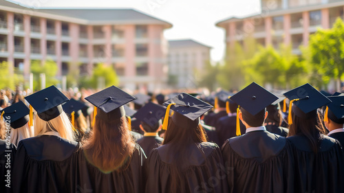 Group of cheerful student throwing graduation hats in the air celebrating, education concept with students celebrate success with hats and certificates