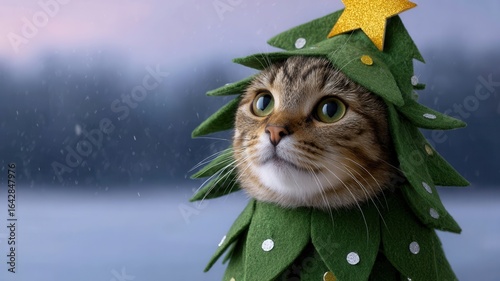 Festive Nativity ginger white cat holiday whimsical christmas tree wearing radiating Winter seasonal warmth cheerful and costume, spirit