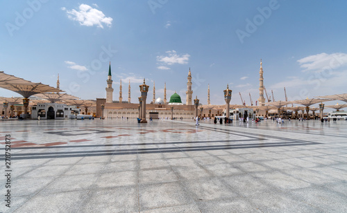 Muslims wearing traditional clothing in the temple of the Nabawi Mosque