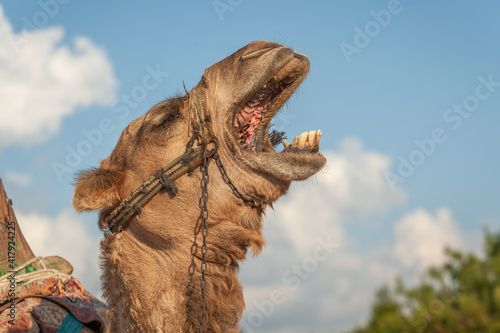 Dromedary camel walking in the desert, Wadi Draa, Tan- Tan, Moro
