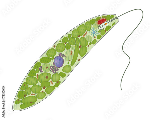 Binary fission in Euglena. Vector educational illustration. Reproduction