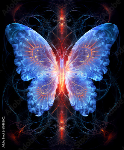 the photo that is shaped like a butterfly, in the style of mystical realms, psychedelic figuration spiritual dimensions