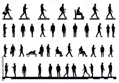 stick figure man, stickman icon, isolated people silhouettes, man standing, running, walking