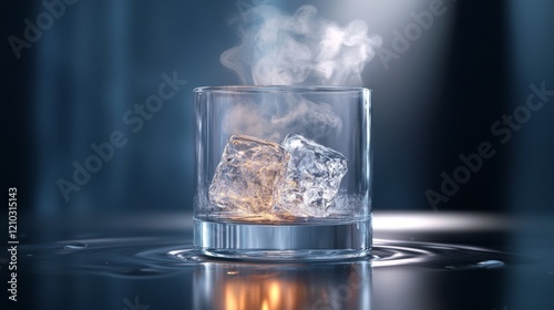 Ice cube, simple and hot with steam in glass. Different temperature of water. Frozen, gaseous vapor state of water. Vector illustration