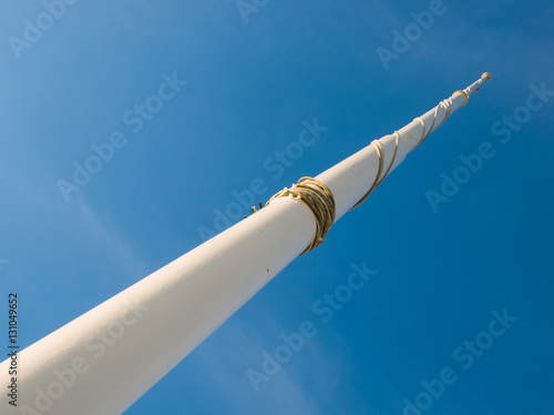 flag pole pointed at the blue sky seen from below