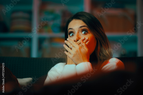 Woman Covering Her Mouth Being Silent on taboo Subjects. Fearful anxious girl being astonished and surprised