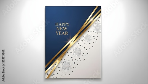 Elegant Happy New Year Card Design with Blue, Gold, and Silver Elements