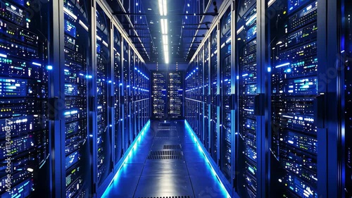 High-tech and futuristic interior of a massive data center. Generative AI