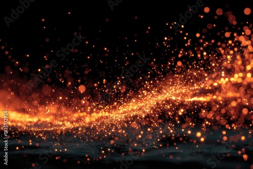 Fiery Sparks Dance: A mesmerizing display of radiant fiery sparks dance gracefully against a black background. Each spark glows with warm intensity, creating a captivating visual experience.