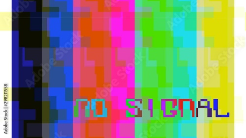 No signal message on glitch colorful background,TV colors bars,loop,WITH SOUND