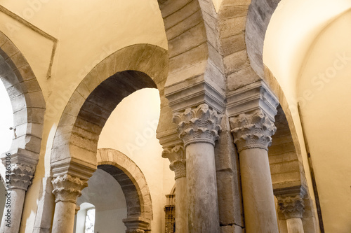 Cillorigo de Liebana, Spain. Inside the Iglesia de Santa Maria (St Mary Church), an example of pre-romanesque and mozarab art in Cantabria