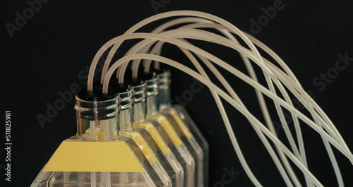 Experience with bacteria to obtain enzymes. cell culture flasks with tubes for supplying oxygen and nutrient medium