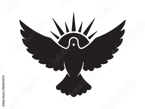 A Golden Dove with Outspread Wings Surrounded by Light and Stars