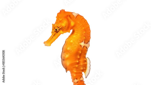 Orange thorny seahorse PNG isolated on transparent background, tropical fish with bony armor and prehensile tail for marine life designs