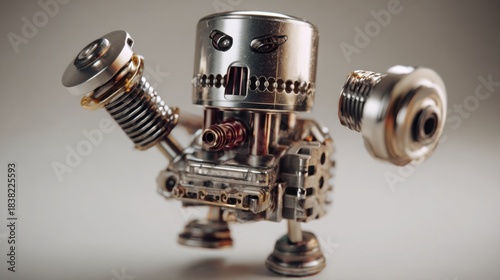 VVT phaser rendered as a tired cartoon character making rattling motions, comedic but realistic mechanical detail, metallic shine, 3D humor style