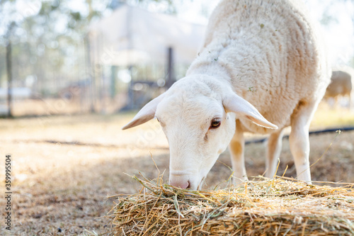 Sheep muzzle outdoors. Standing and staring breeding agriculture animal