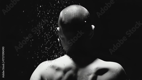 Testa di uomo con porta aperta, immaginazione e pensieri