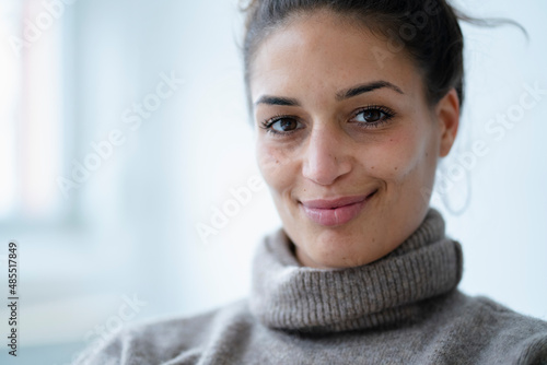 Portrait of smiling beautiful black girl wear turtleneck with afro hairstyle