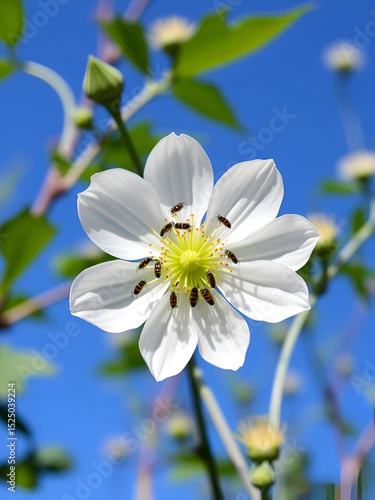 A mountain monkey beetle (hoplia argentea) feeding on a white umbelliferous plant