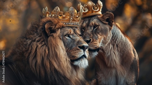 Lion king in golden crown background wallpaper concept
