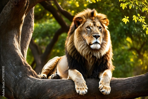 Lion on a throne in the jungle