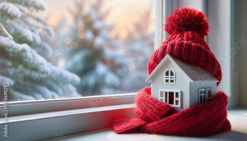 Smart Winter Insulation. Tips to Keep Your Home Warm, Energy Efficient, and Protected During Freezing Weather, Featuring a Creative Miniature House Wrapped in Cozy Winter Layers